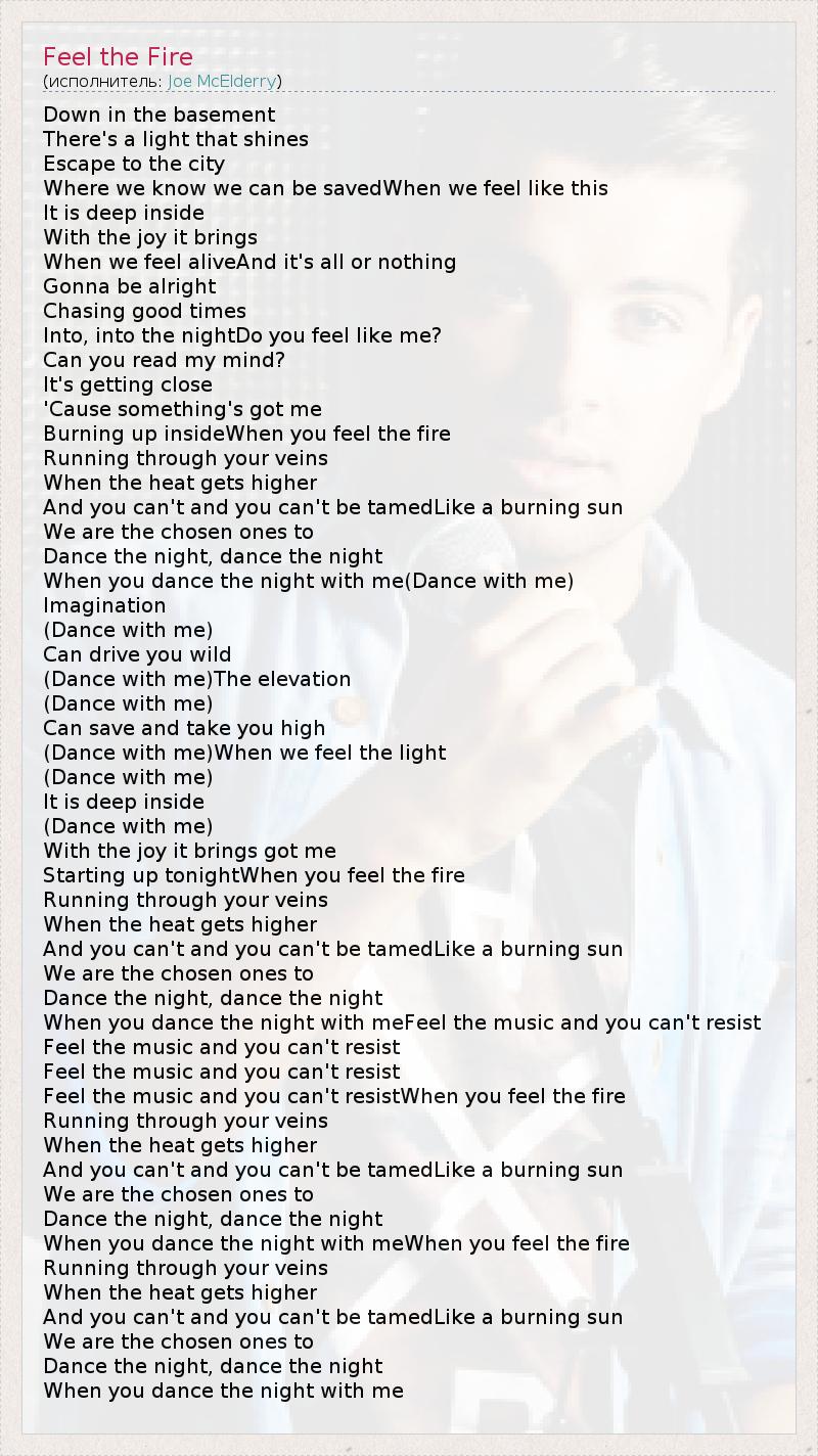 А как ты думаешь, о чем песня "Feel the Fire" ?