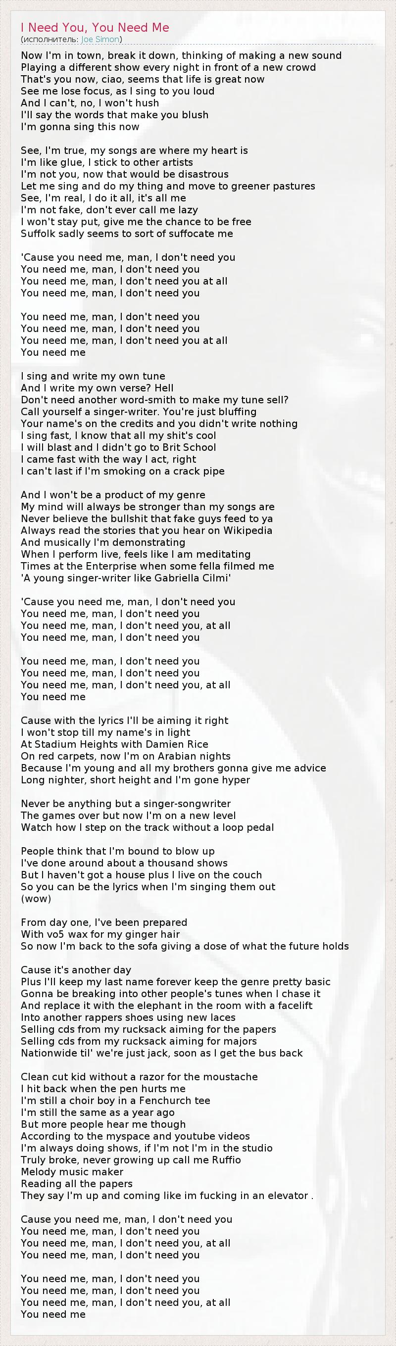 ГлавнаяИсполнителиJoe SimonI Need You, You Need Me