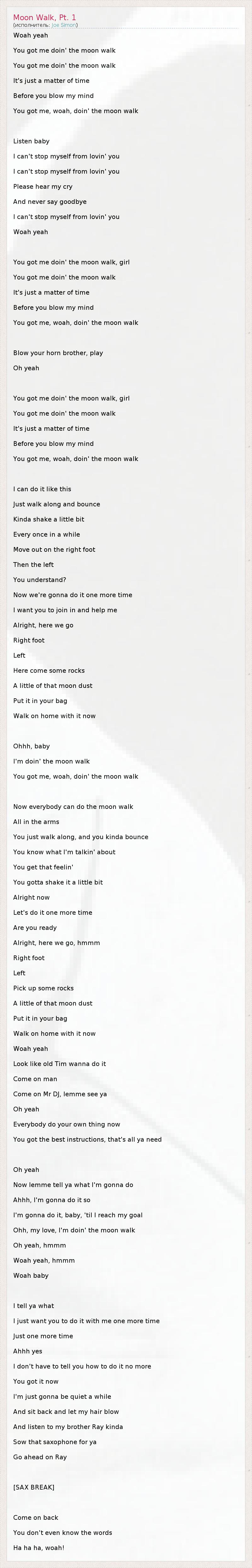 А как ты думаешь, о чем песня "Moon Walk, Pt. 1" ?