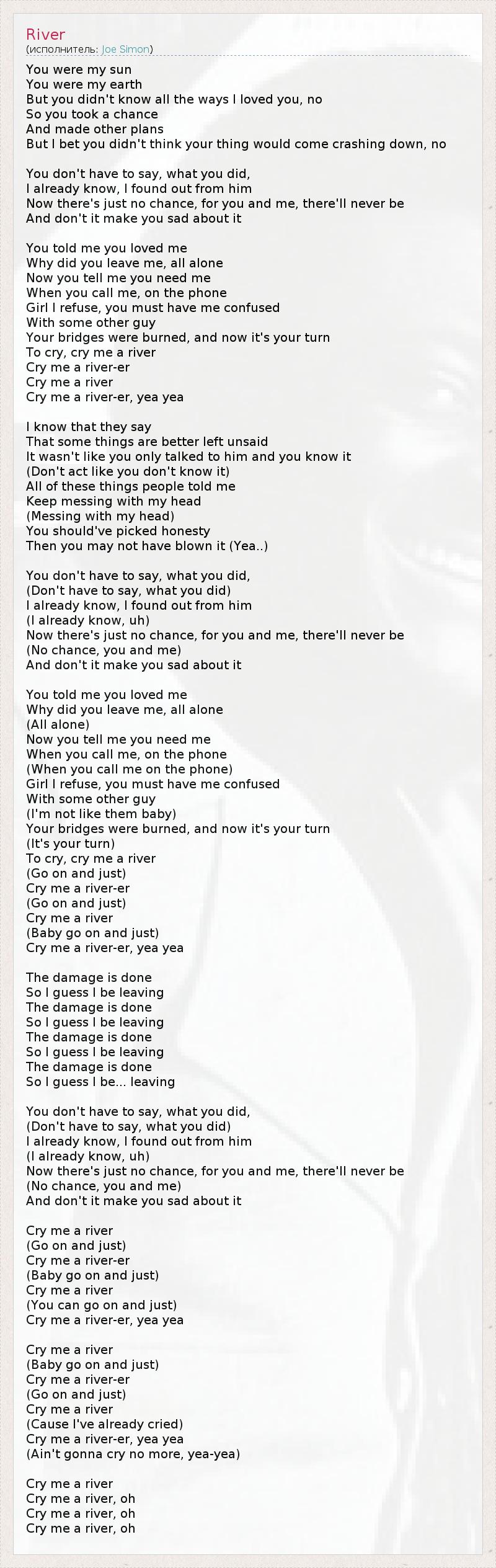 Cry me a river-er, yea yea