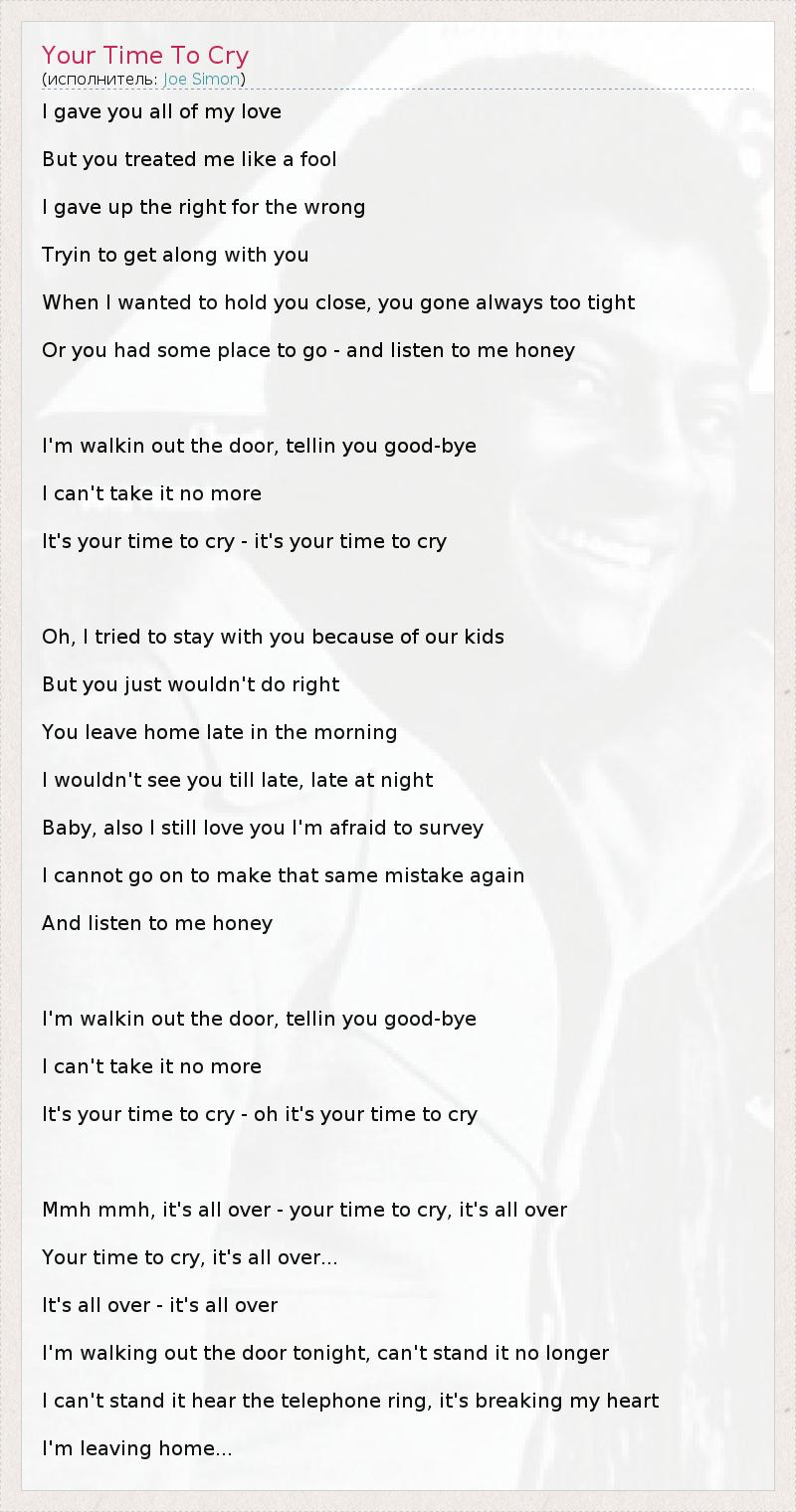 It's your time to cry - it's your time to cry