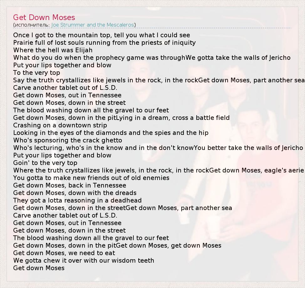 Get down Moses, down in the pitGet down Moses, get down Moses