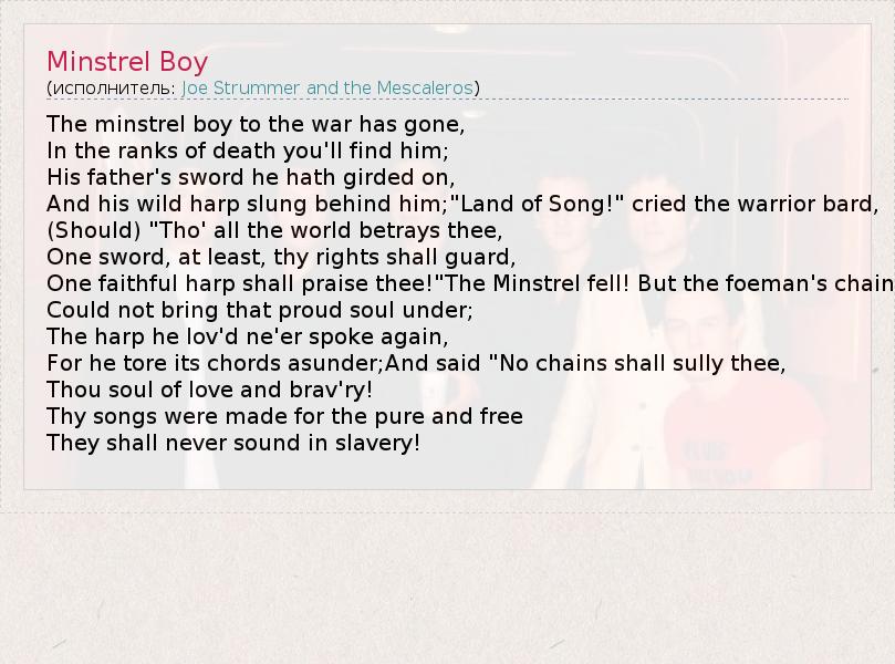 А как ты думаешь, о чем песня "Minstrel Boy" ?