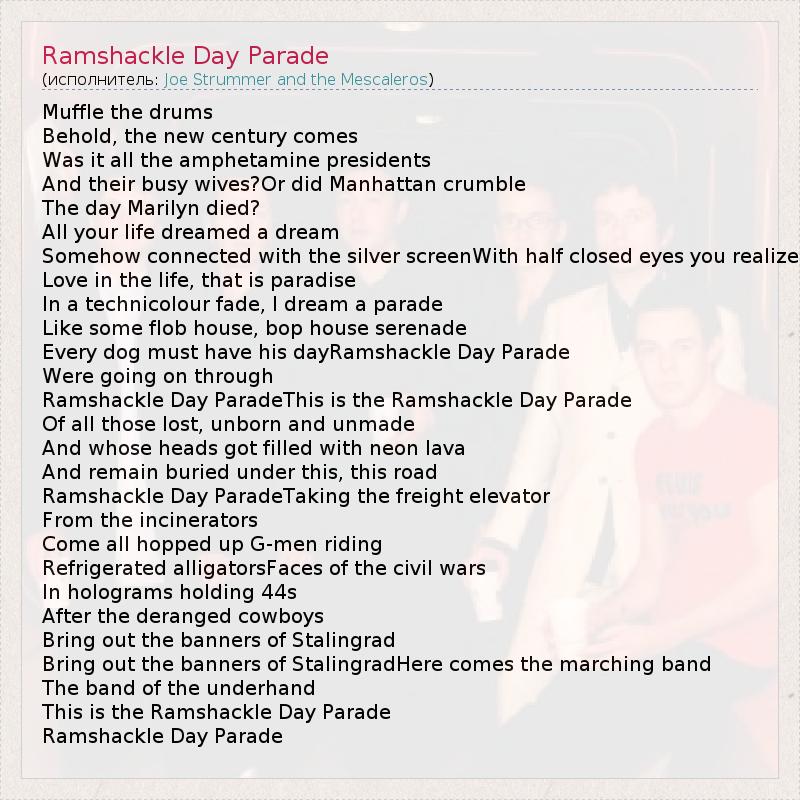 А как ты думаешь, о чем песня "Ramshackle Day Parade" ?