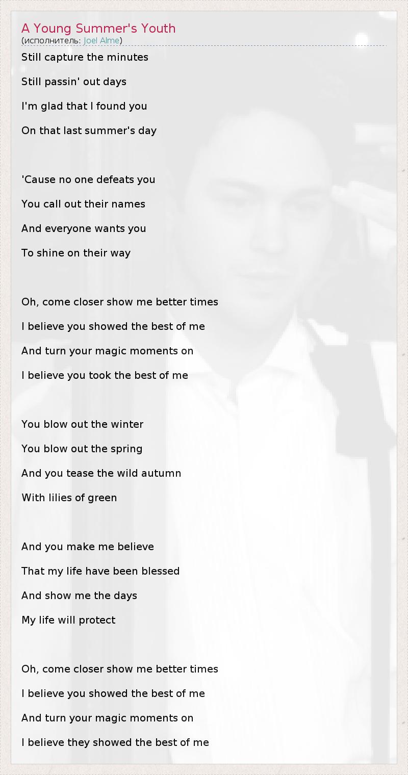 А как ты думаешь, о чем песня "A Young Summer's Youth" ?
