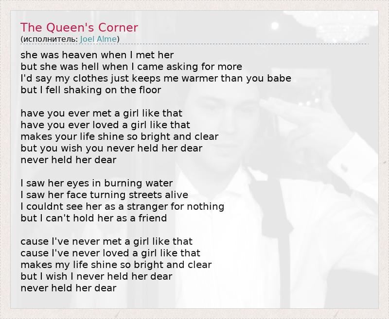 А как ты думаешь, о чем песня "The Queen's Corner" ?