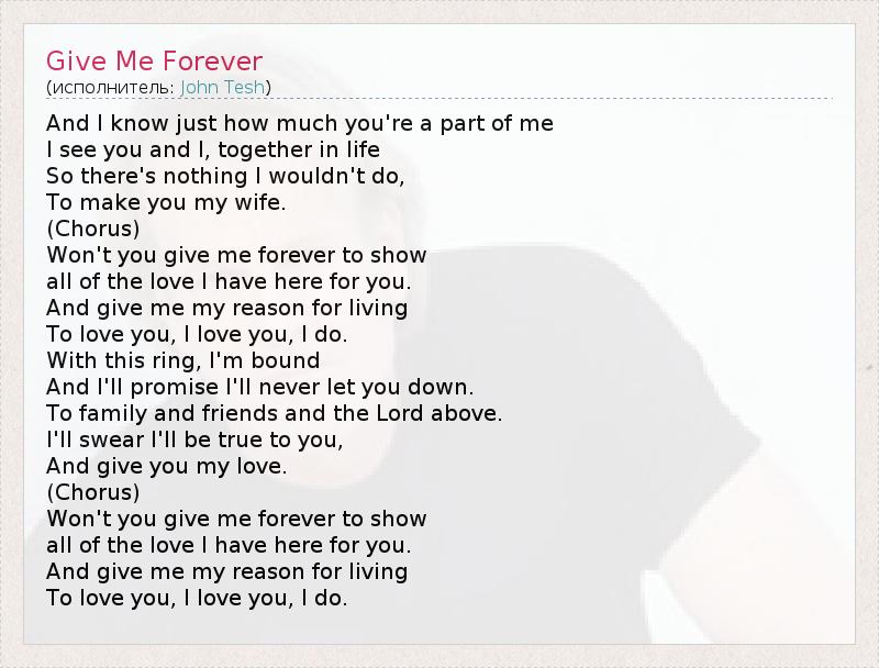 А как ты думаешь, о чем песня "Give Me Forever" ?