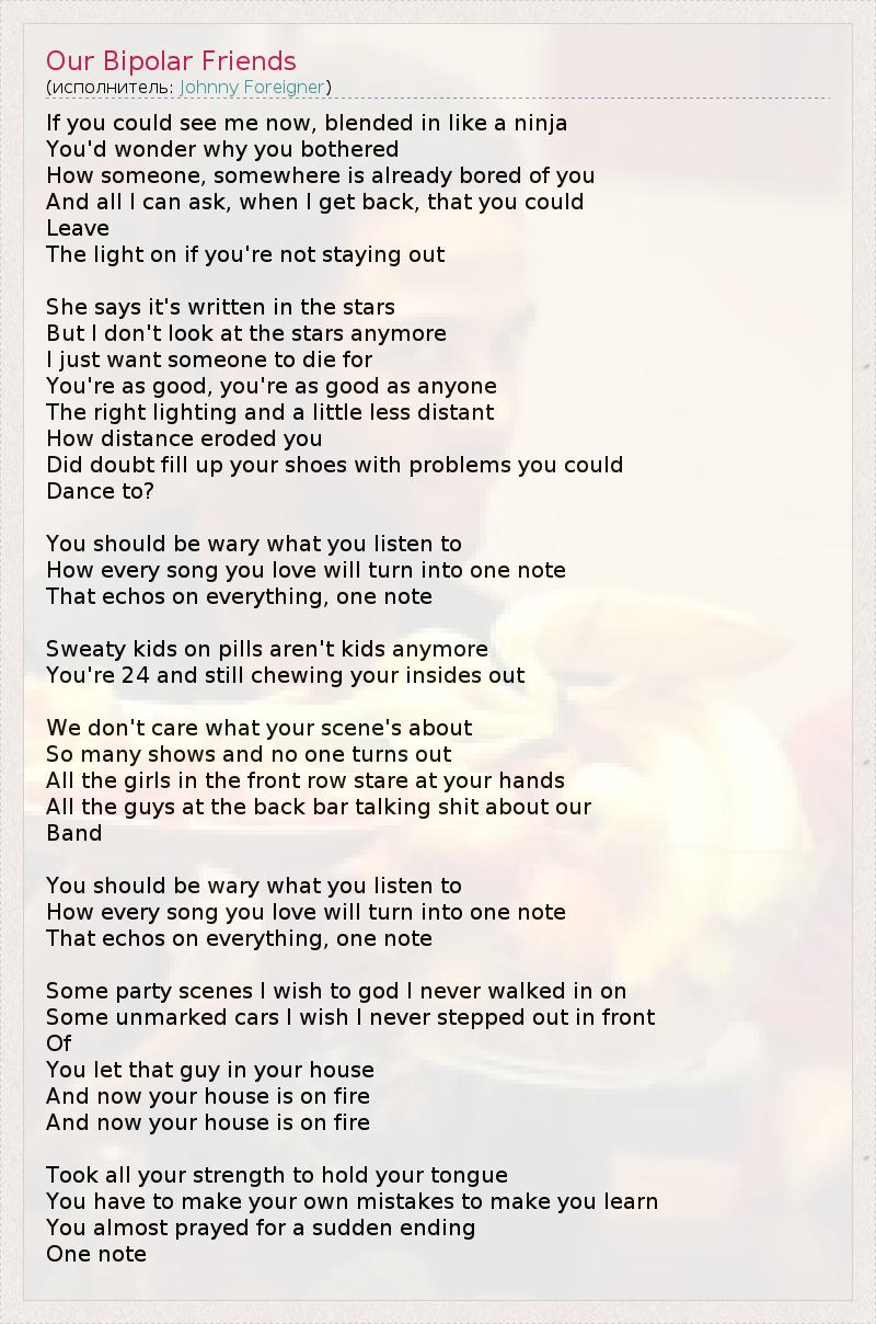 А как ты думаешь, о чем песня "Our Bipolar Friends" ?