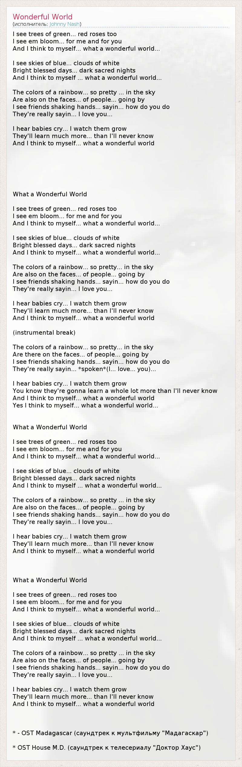 А как ты думаешь, о чем песня "Wonderful World" ?