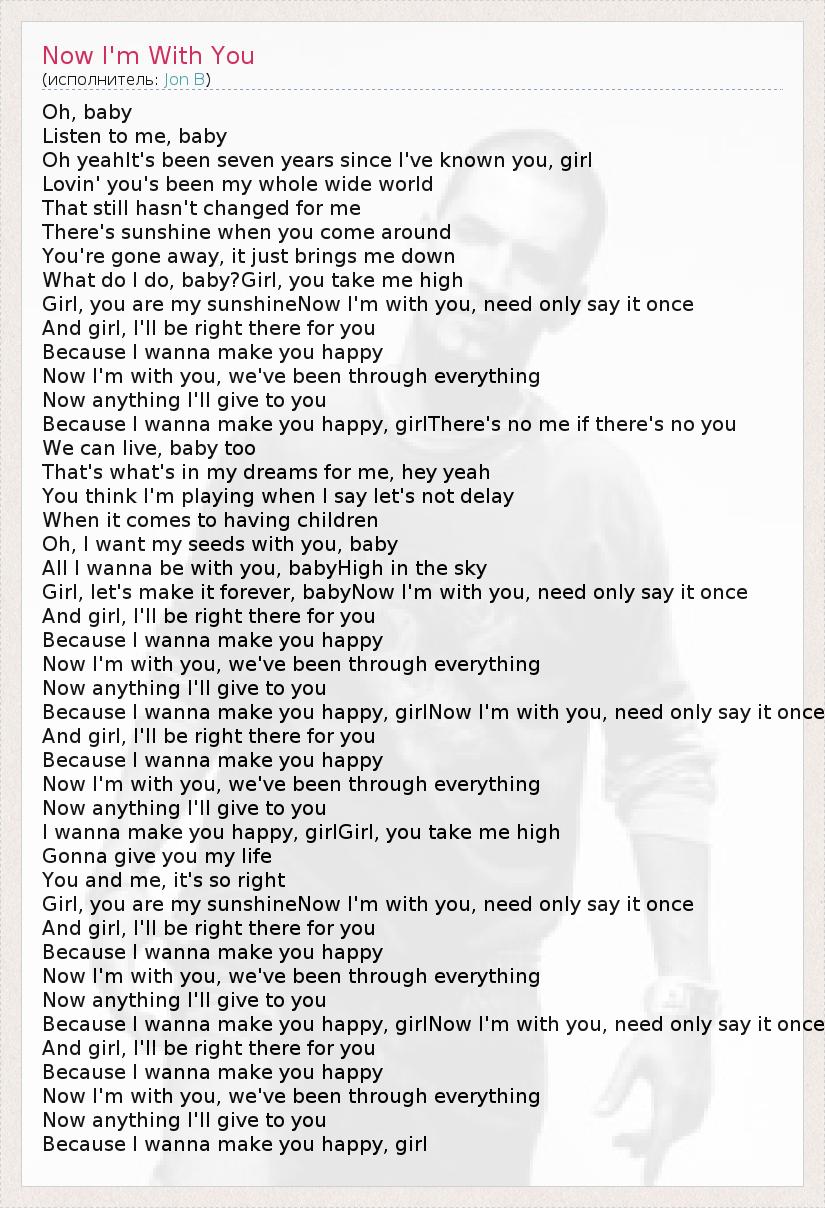 Because I wanna make you happy, girlNow I'm with you, need only say it once