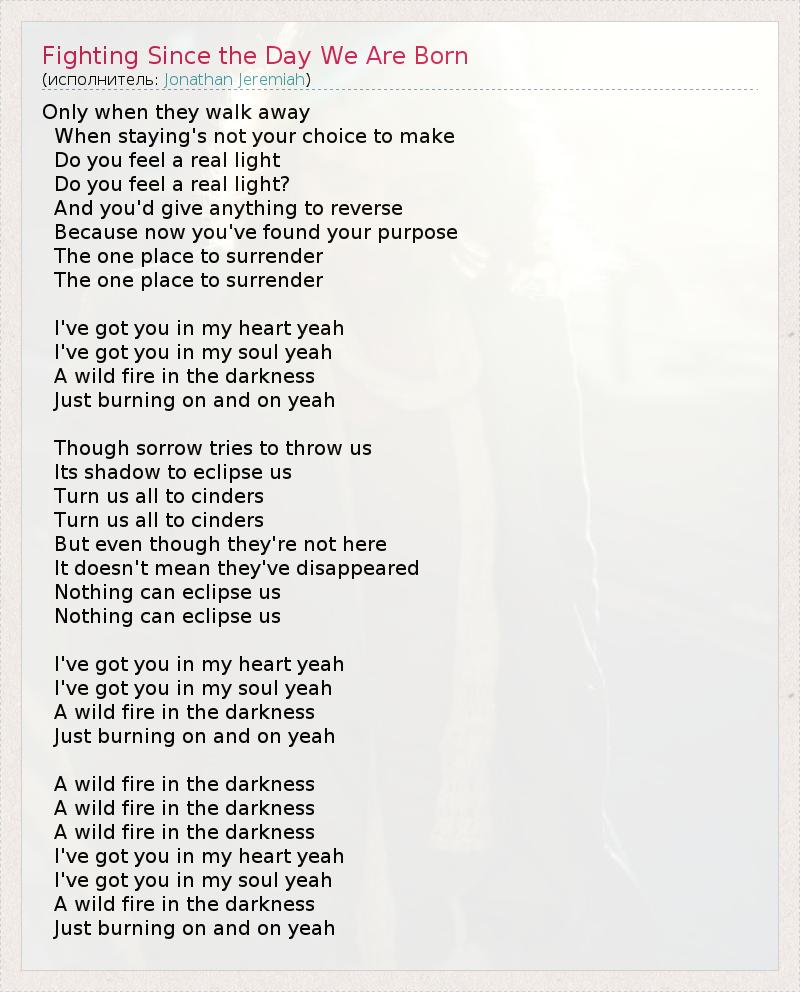 ГлавнаяИсполнителиJonathan JeremiahFighting Since the Day We Are Born