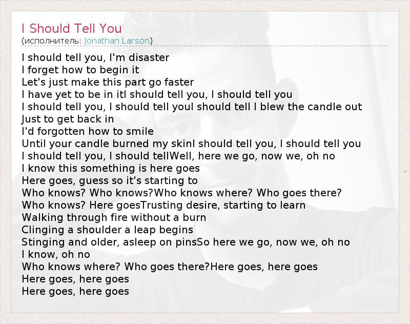 А как ты думаешь, о чем песня "I Should Tell You" ?