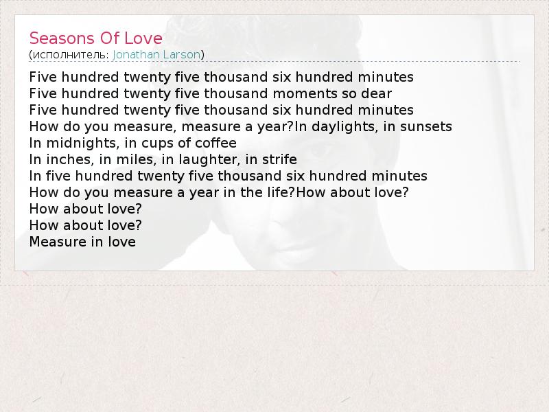 А как ты думаешь, о чем песня "Seasons Of Love" ?