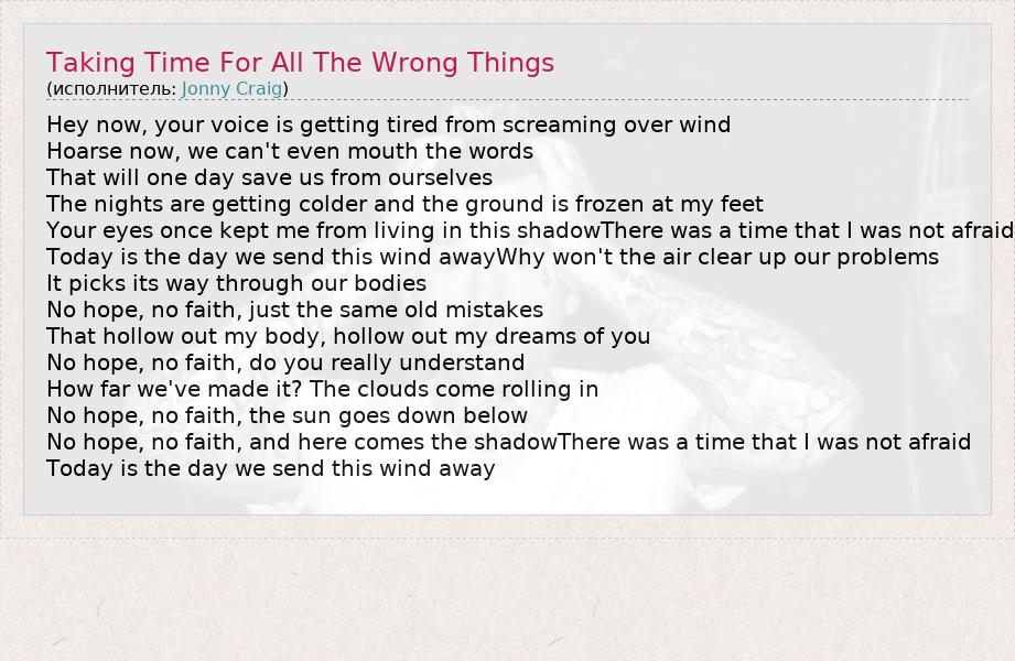 А как ты думаешь, о чем песня "Taking Time For All The Wrong Things" ?