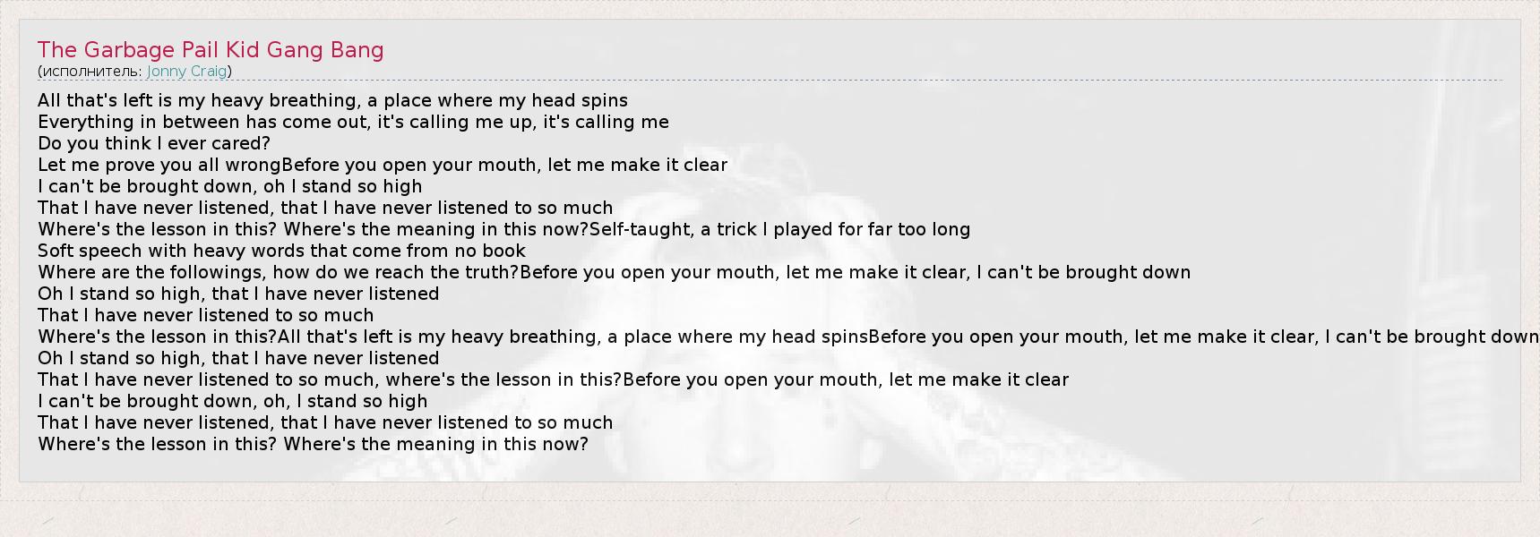 А как ты думаешь, о чем песня "The Garbage Pail Kid Gang Bang" ?
