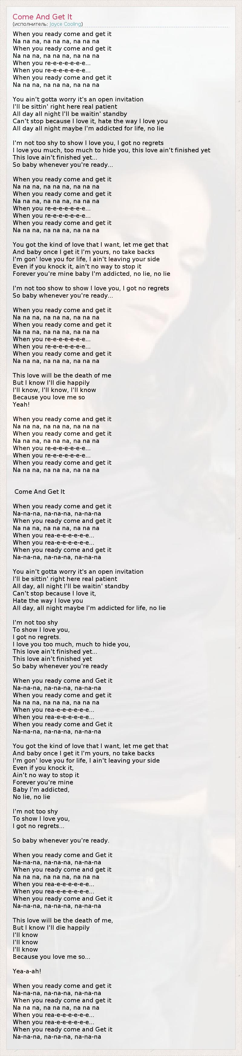 А как ты думаешь, о чем песня "Come And Get It" ?
