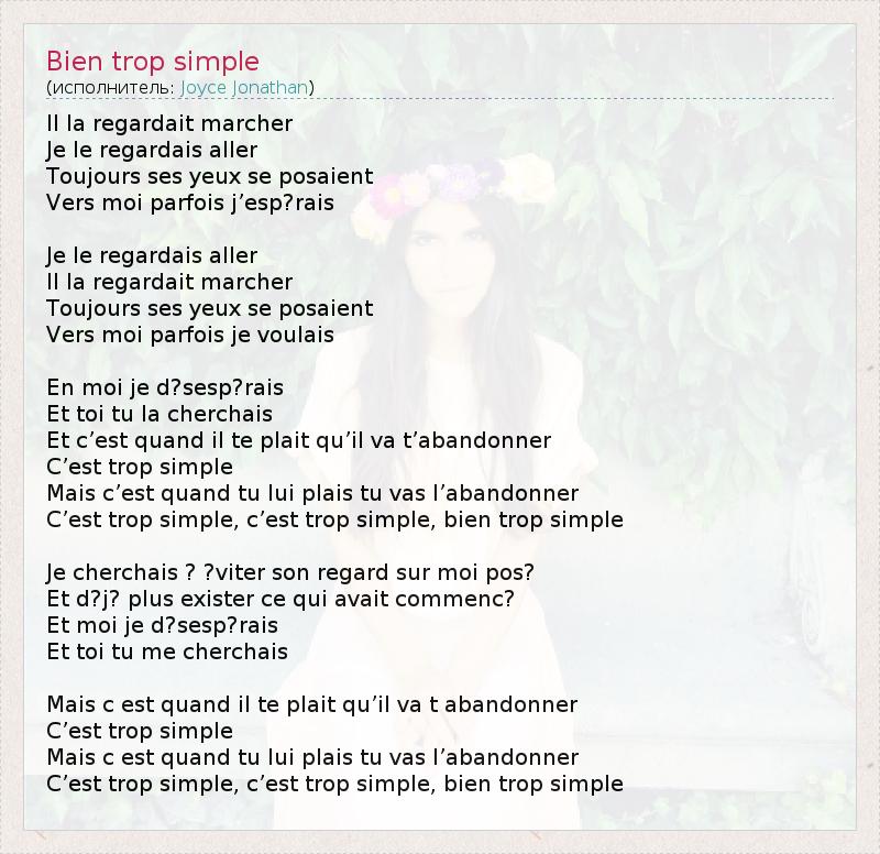 А как ты думаешь, о чем песня "Bien trop simple" ?