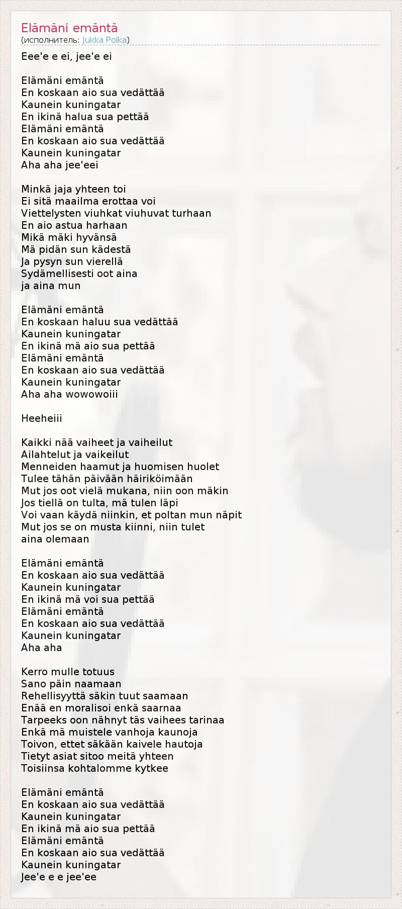А как ты думаешь, о чем песня "Elämäni emäntä" ?
