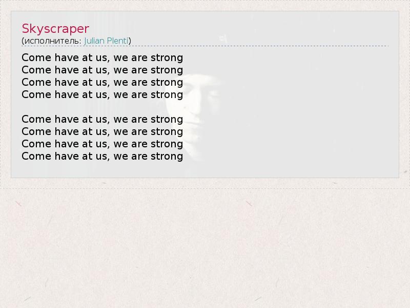 А как ты думаешь, о чем песня "Skyscraper" ?