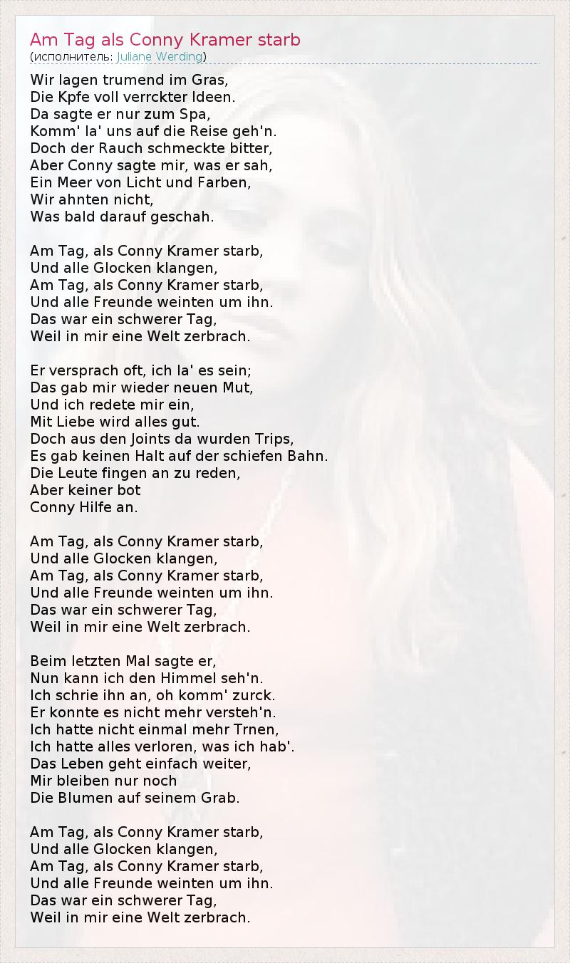 А как ты думаешь, о чем песня "Am Tag als Conny Kramer starb" ?