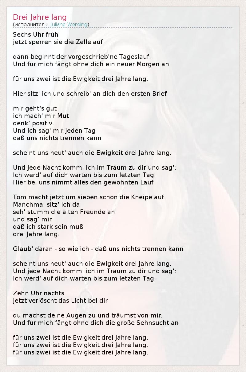 А как ты думаешь, о чем песня "Drei Jahre lang" ?