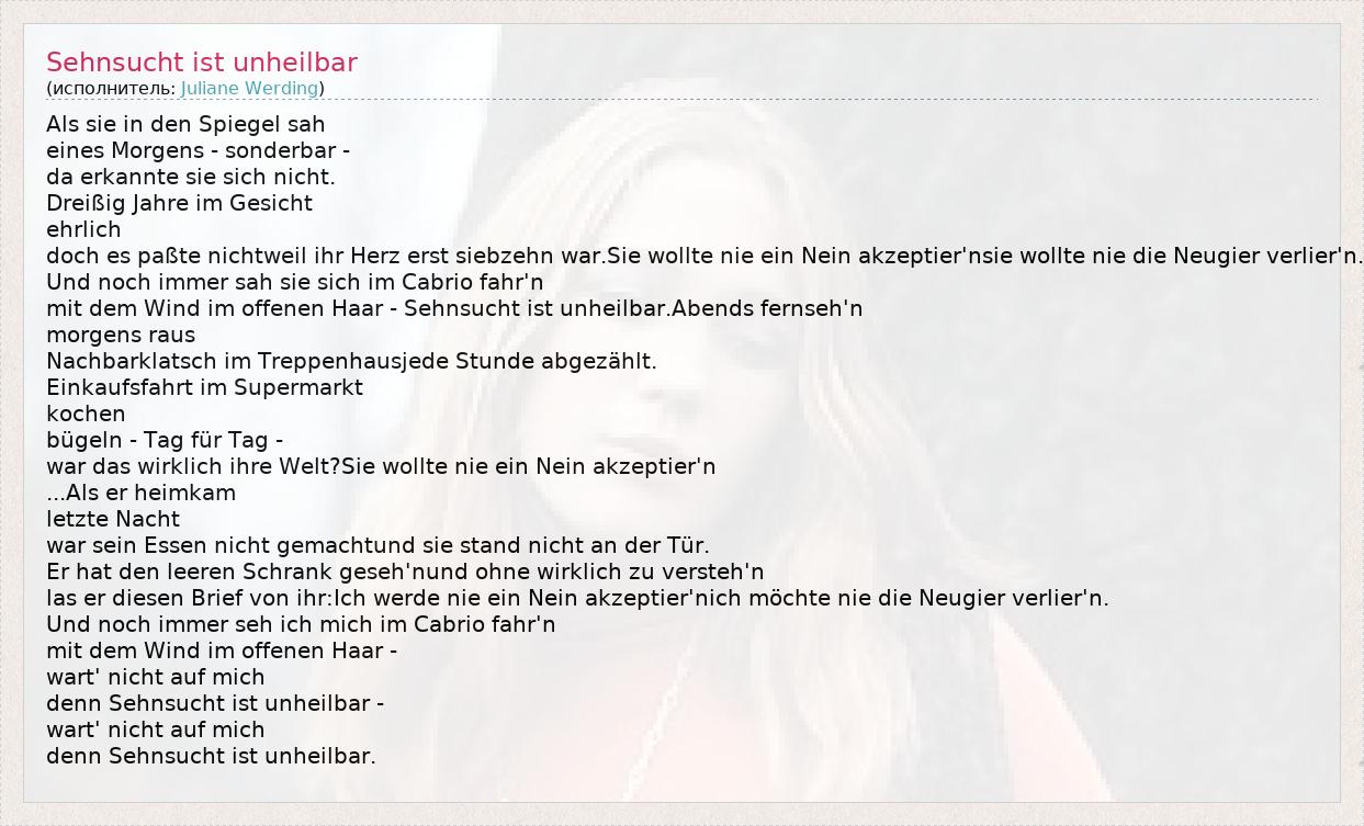 А как ты думаешь, о чем песня "Sehnsucht ist unheilbar" ?