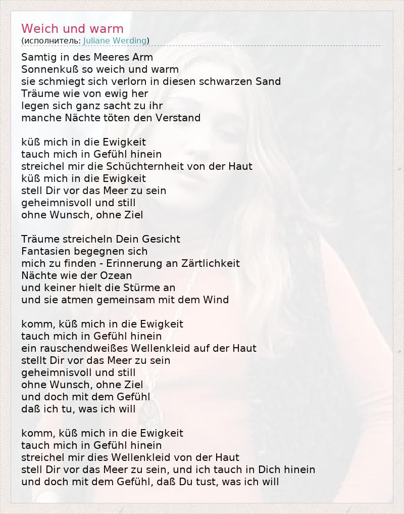 А как ты думаешь, о чем песня "Weich und warm" ?