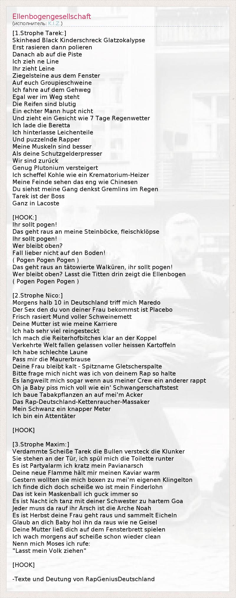 ГлавнаяИсполнителиK.I.Z.Ellenbogengesellschaft