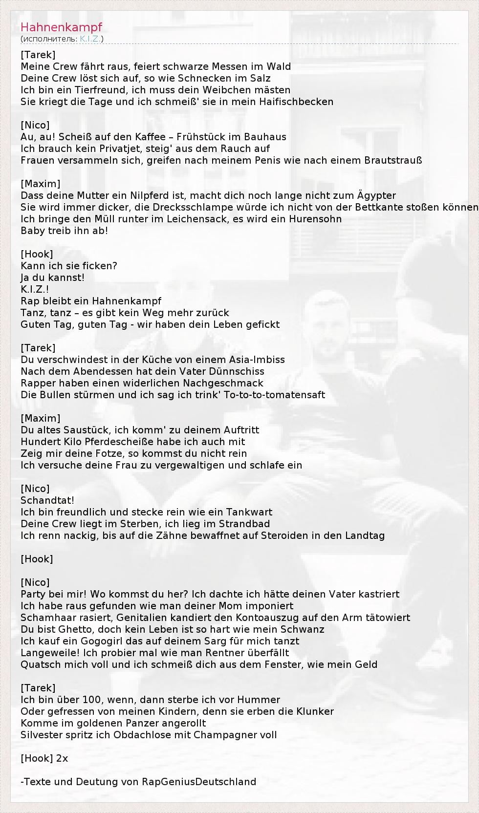 А как ты думаешь, о чем песня "Hahnenkampf" ?