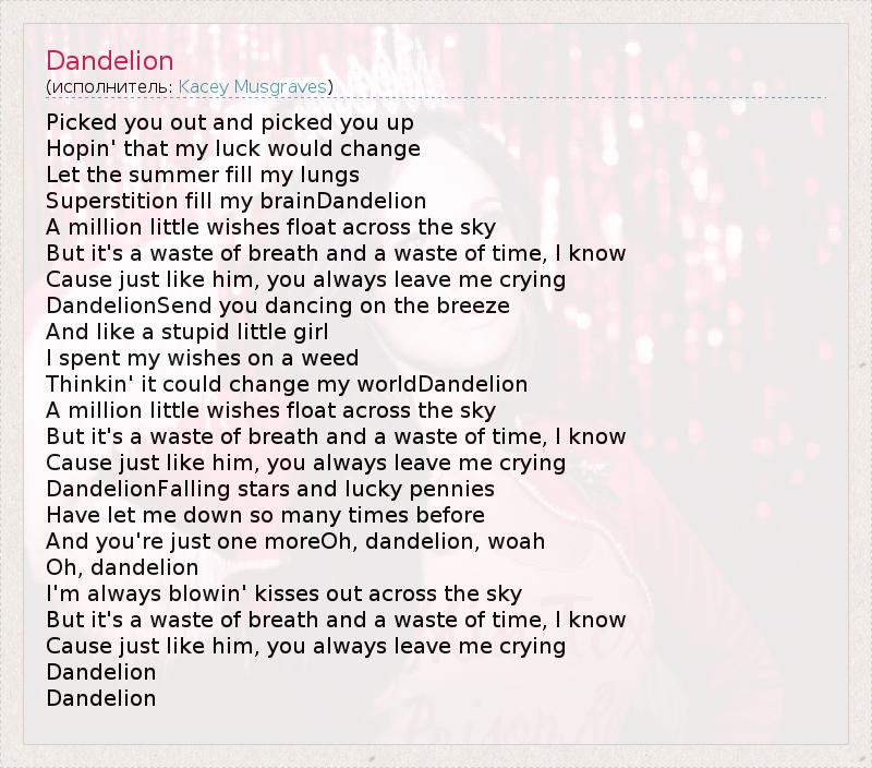 Это интересно:Kacey Musgraves родилась 21 августа в 1988 году в городке Миниола, штат Техас. В 2007 году участвовала в конкурсе "Nashville Star" (штат Теннесси). Первые записи сделала в Остине (Техас), в 2008 году. В 2012 году выпустила первый сингл "Merry Go Round", который в 2014 году получит Grammy за лучшую кантри песню. 19 марта 2013 года выпустила альбом "Same Trailer Different Park", который получит Grammy в 2014 в номинации "Лучший... продолжение