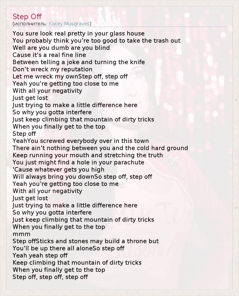 Это интересно:Kacey Musgraves родилась 21 августа в 1988 году в городке Миниола, штат Техас. В 2007 году участвовала в конкурсе "Nashville Star" (штат Теннесси). Первые записи сделала в Остине (Техас), в 2008 году. В 2012 году выпустила первый сингл "Merry Go Round", который в 2014 году получит Grammy за лучшую кантри песню. 19 марта 2013 года выпустила альбом "Same Trailer Different Park", который получит Grammy в 2014 в номинации "Лучший... продолжение