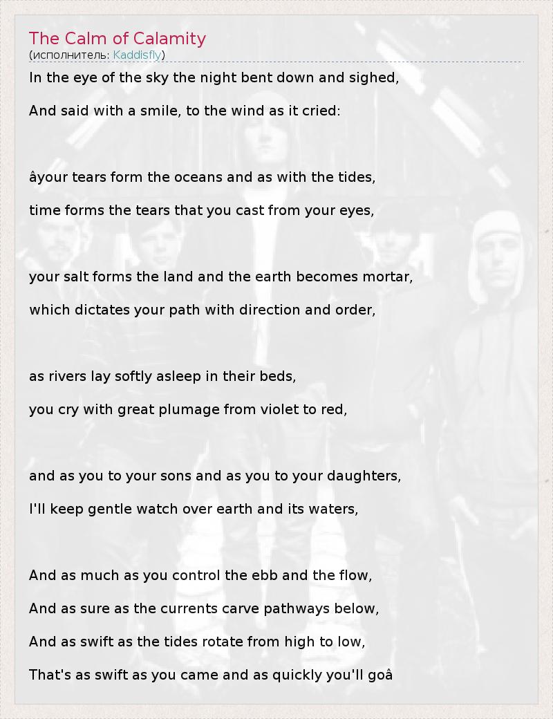 А как ты думаешь, о чем песня "The Calm of Calamity" ?