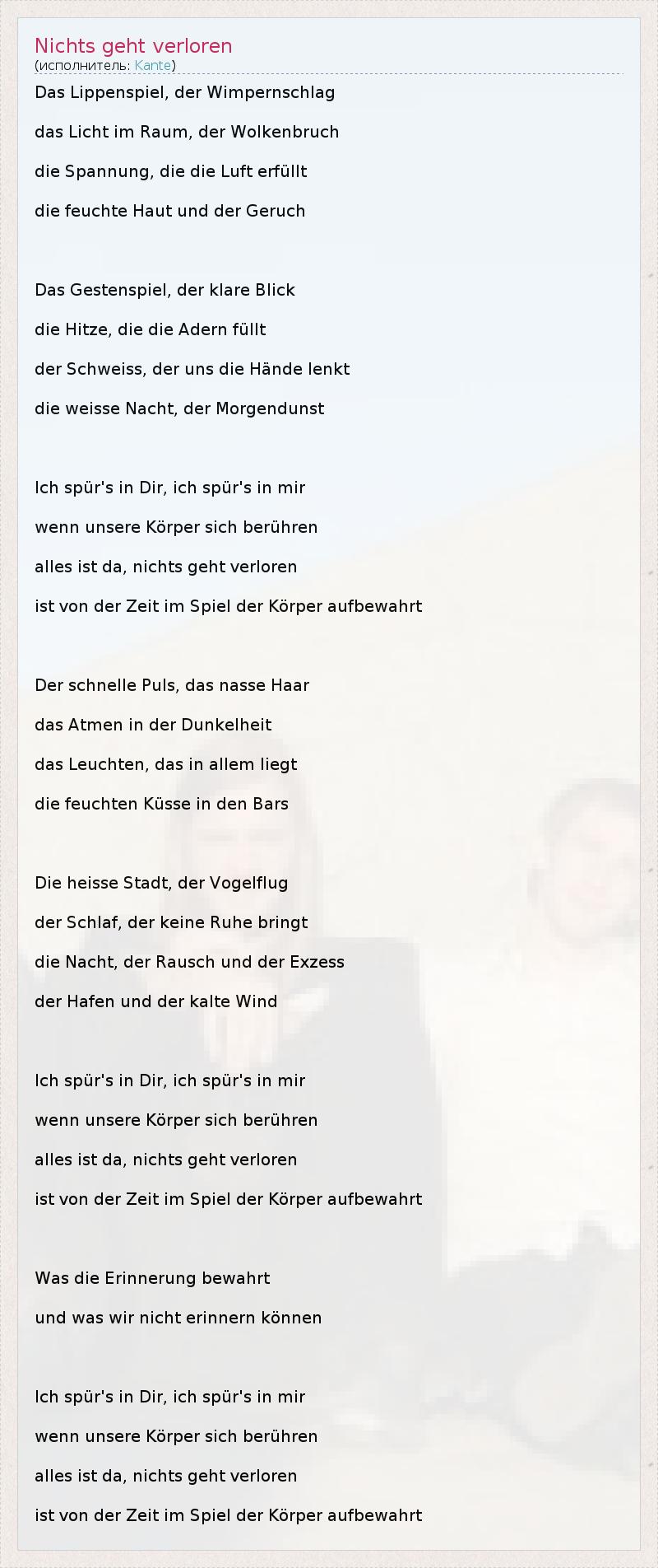 А как ты думаешь, о чем песня "Nichts geht verloren" ?