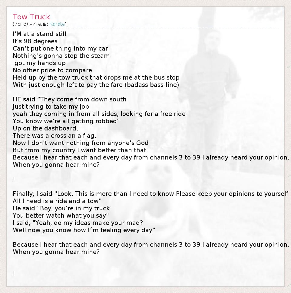 А как ты думаешь, о чем песня "Tow Truck" ?