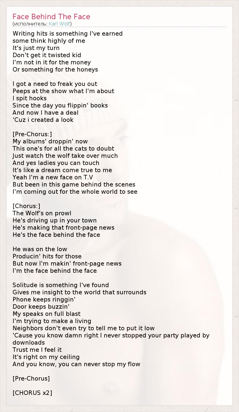 А как ты думаешь, о чем песня "Face Behind The Face" ?