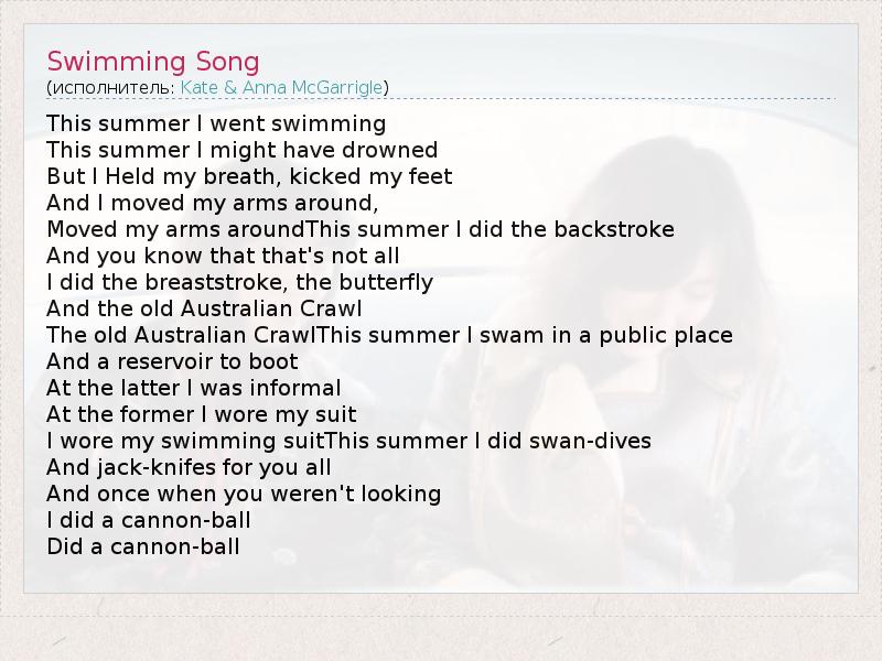 А как ты думаешь, о чем песня "Swimming Song" ?