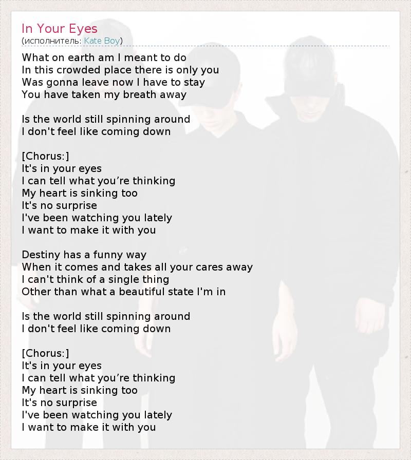 А как ты думаешь, о чем песня "In Your Eyes" ?