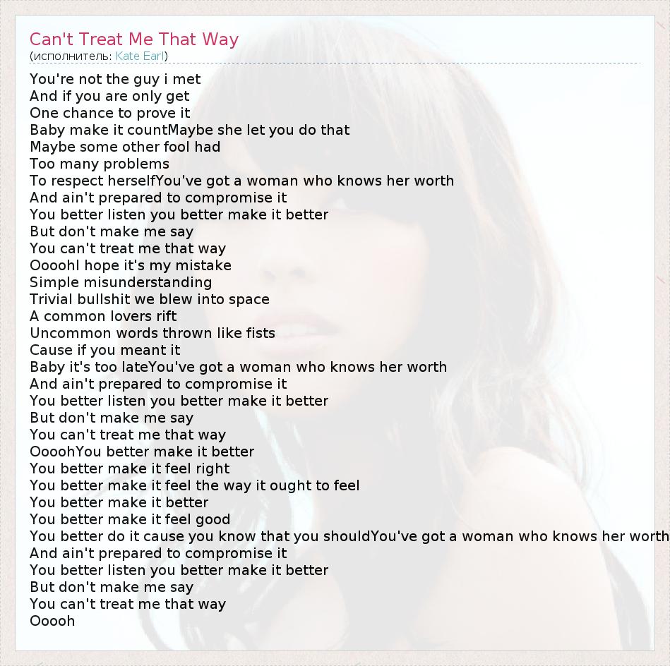 А как ты думаешь, о чем песня "Can't Treat Me That Way" ?