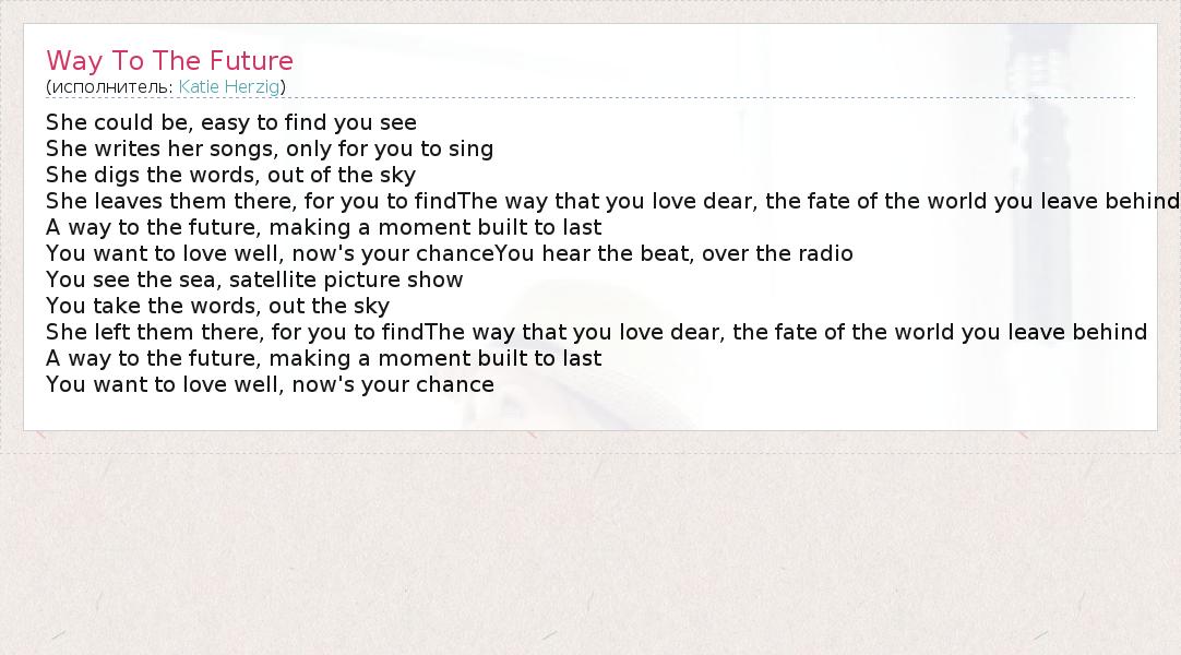 А как ты думаешь, о чем песня "Way To The Future" ?