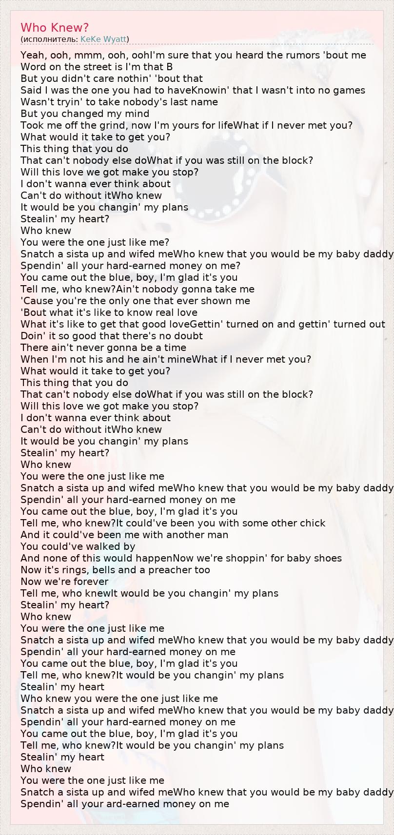 А как ты думаешь, о чем песня "Who Knew?" ?