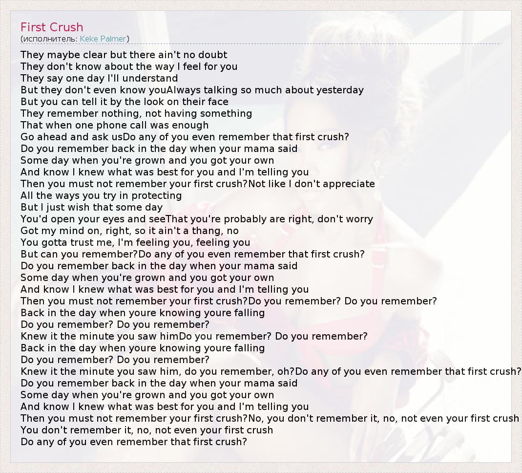 Then you must not remember your first crush?Do you remember? Do you remember?