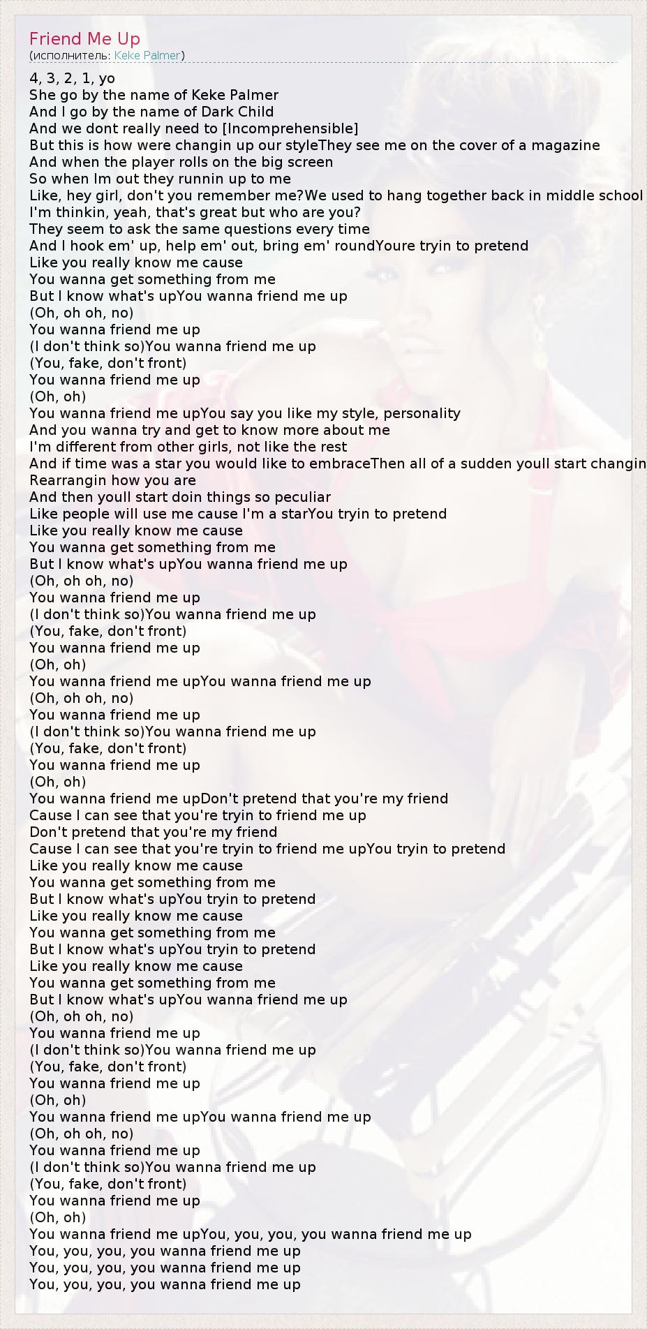 You wanna friend me upDon't pretend that you're my friend
