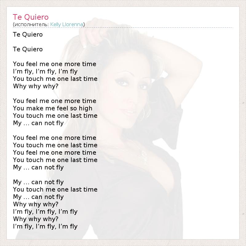 Te Quiero Te Quiero You feel me one more time I’m fly, I’m fly, I’m fly You touch me one last time Why why why? You feel me one more time You make me feel so high You touch me one last time My … can not fly You feel me one more time You touch me one last time You feel me one more time You touch me one last time My … can not fly My … can not fly You touch me one last time My … can not fly Why why why? I’m fly, I’m fly, I’m fly Why why why? I’m fly, I’m fly, I’m fly