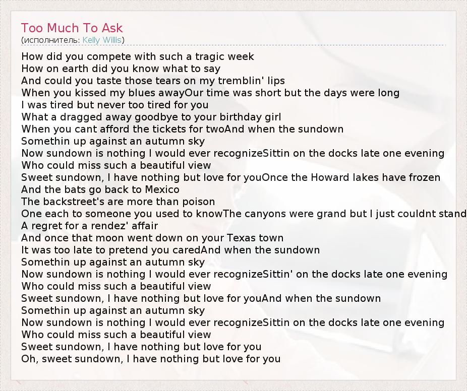 А как ты думаешь, о чем песня "Too Much To Ask" ?