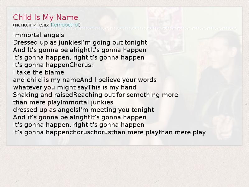 А как ты думаешь, о чем песня "Child Is My Name" ?