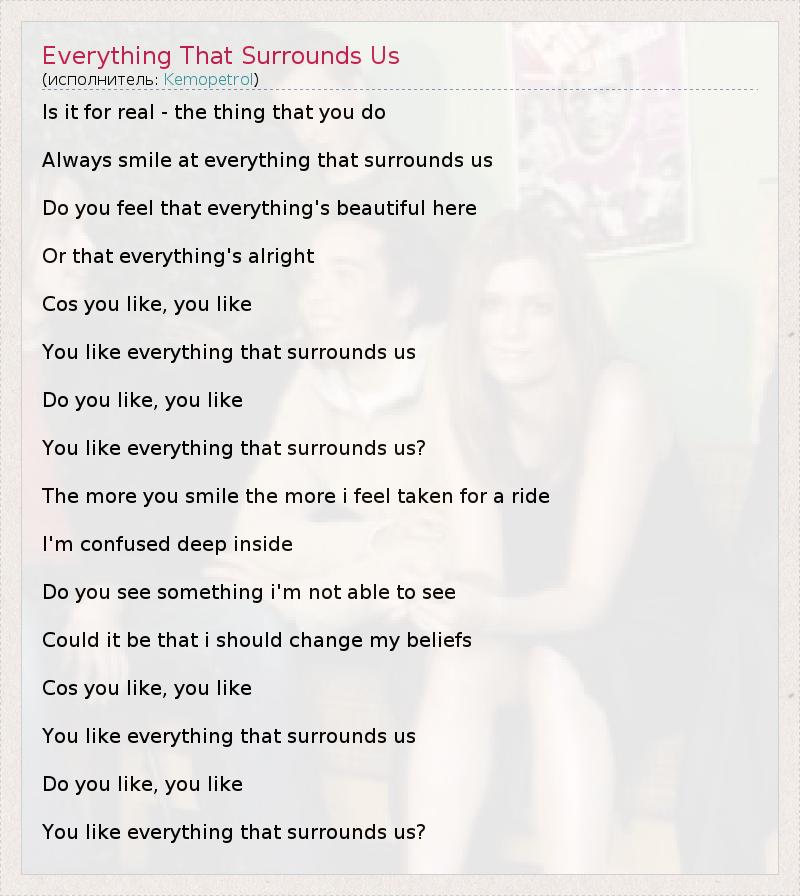 А как ты думаешь, о чем песня "Everything That Surrounds Us" ?