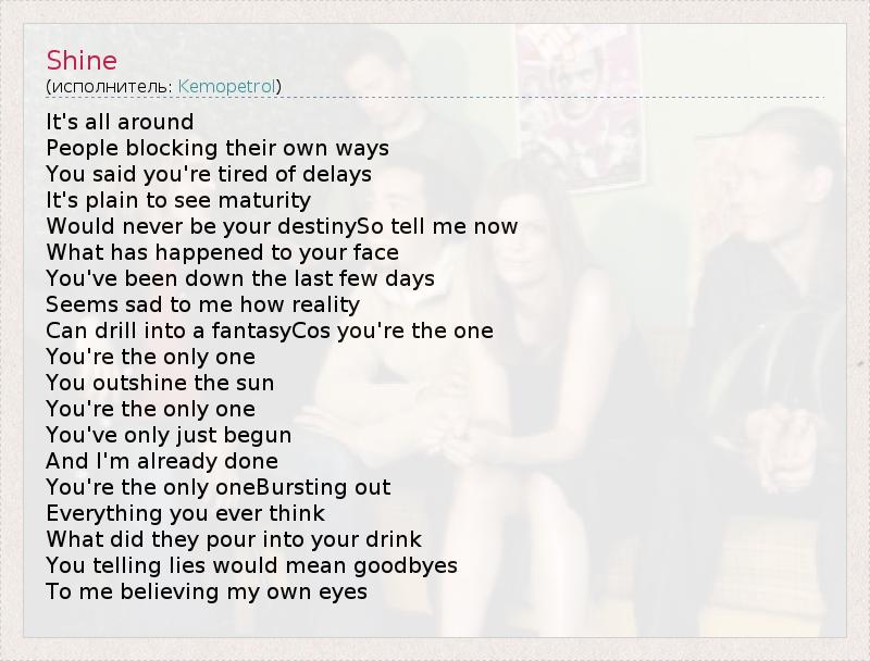 Это интересно:Kemopetrol - это финская группа из Хельсинки, сочетающая в своем творчестве традиционные лиричные поп-мелодии с современной эстетикой. Название группы образовано от имени чешкого хоккеиста Хемопетрола Литвинова.Группа основана в 1998 году гитаристом Marko Soukka и клавишником Kalle Koivisto первоначально как эмбиент-проект. Вокалистка Laura Närhi, басист Kari Myöhänen и ударник Teemu Nordman присоединились к коллективу... продолжение