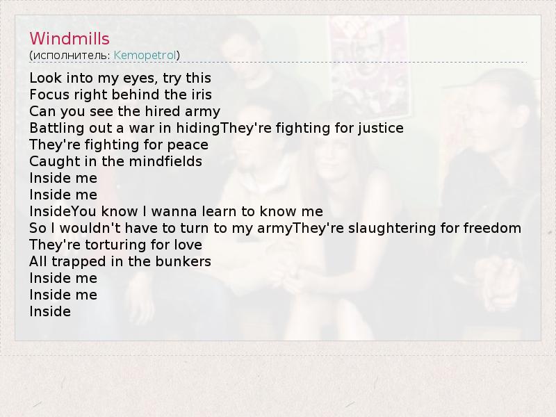А как ты думаешь, о чем песня "Windmills" ?