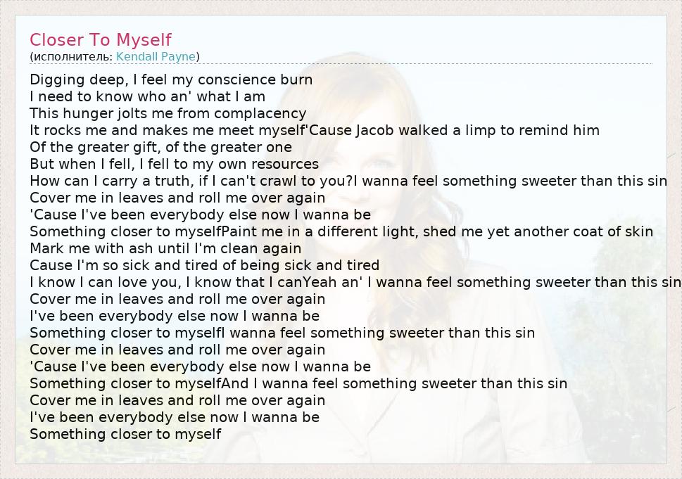А как ты думаешь, о чем песня "Closer To Myself" ?