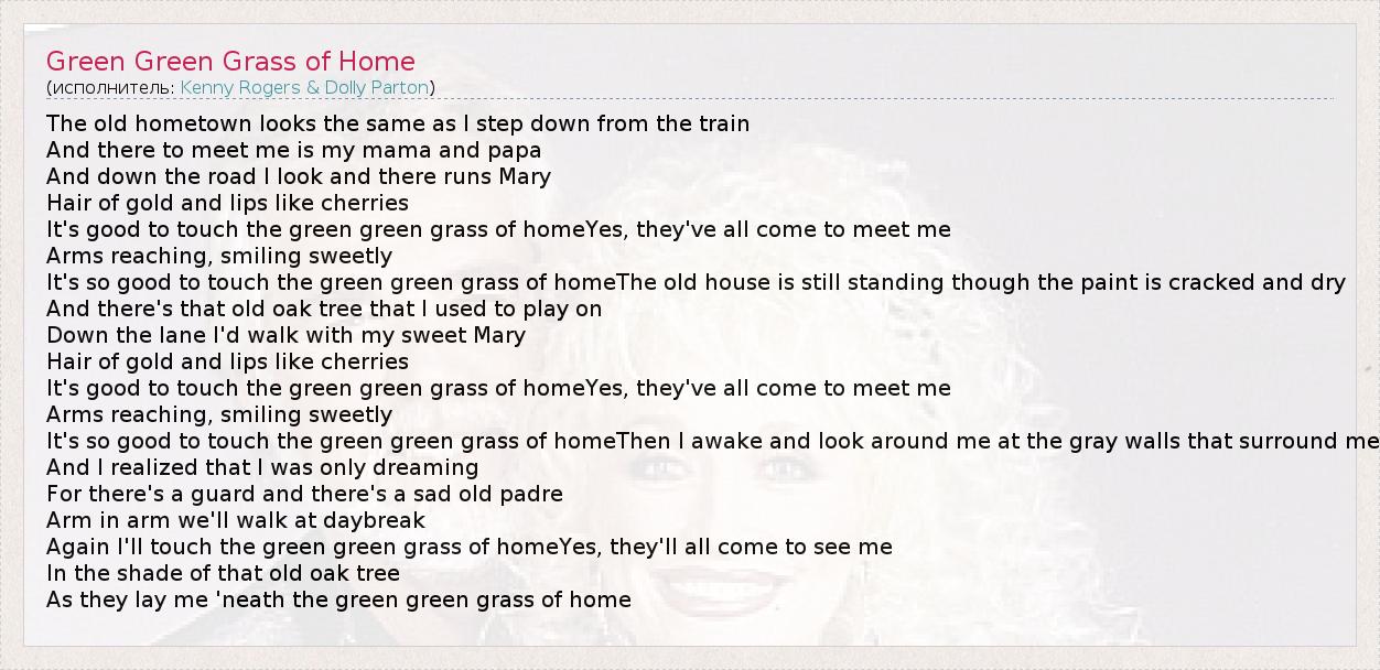 А как ты думаешь, о чем песня "Green Green Grass of Home" ?